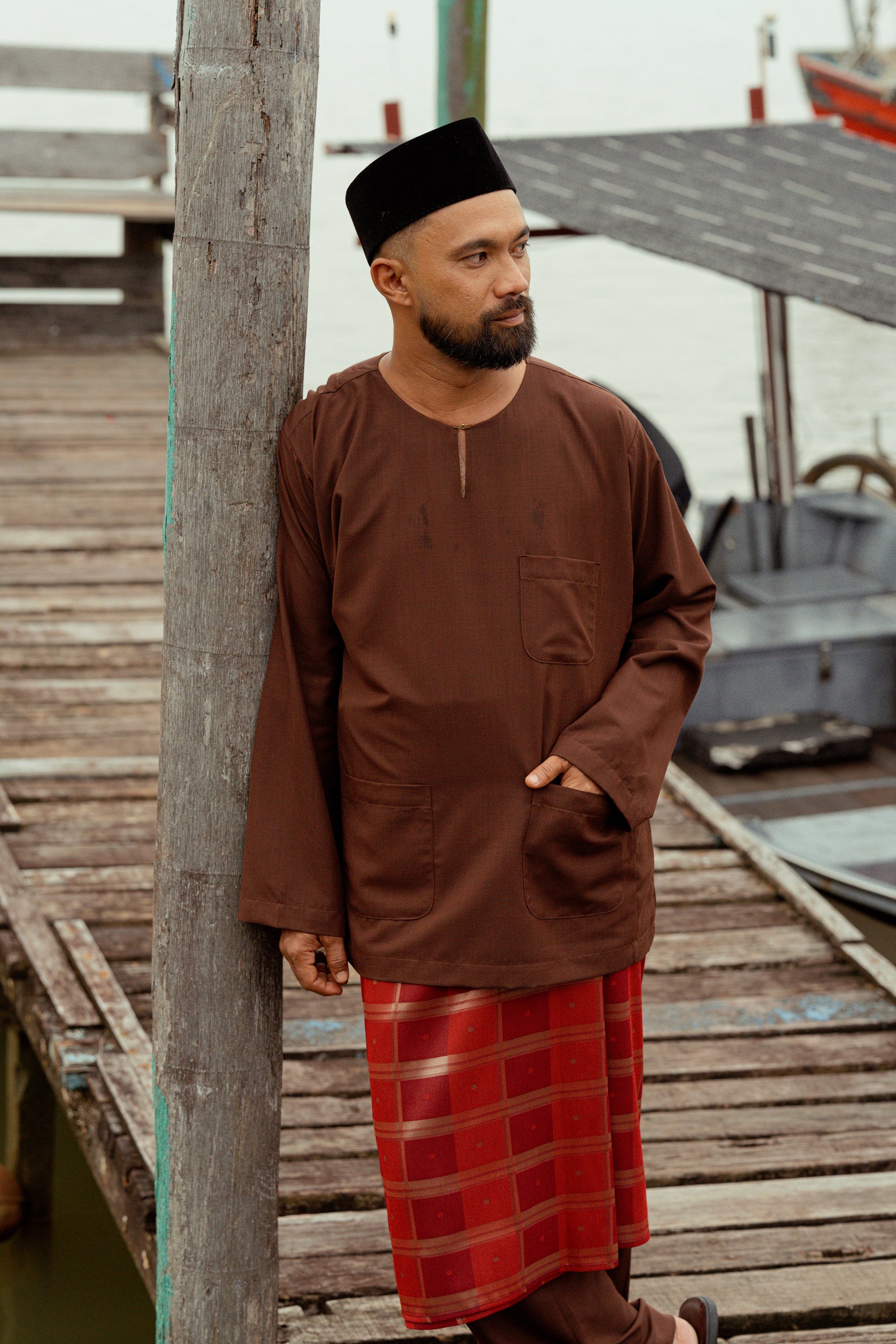 OG' Series Baju Melayu Teluk Belanga Klasik Seluar Moden - Perang Tua